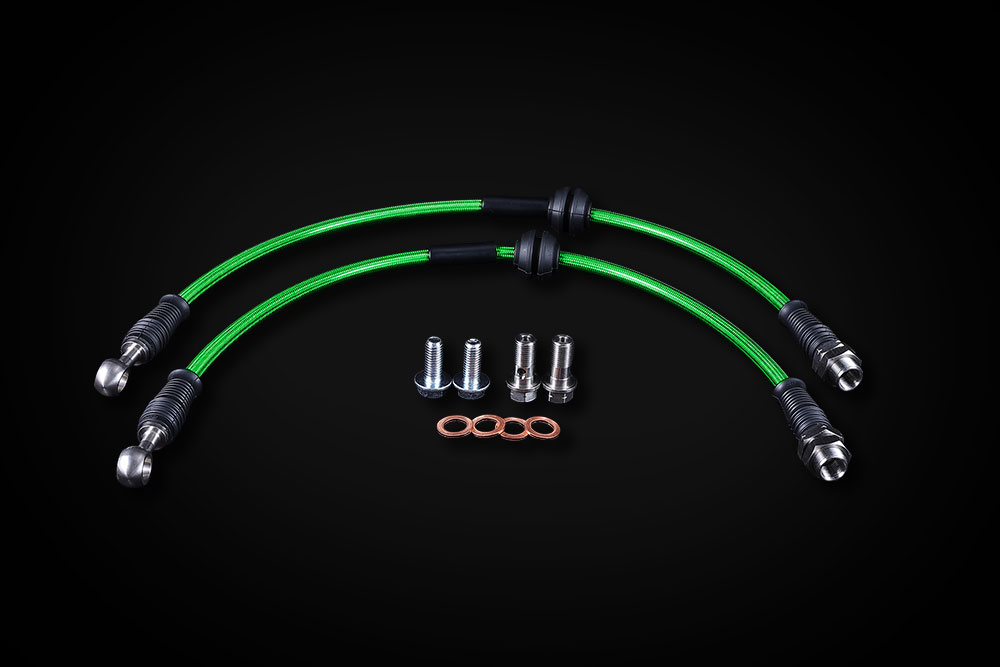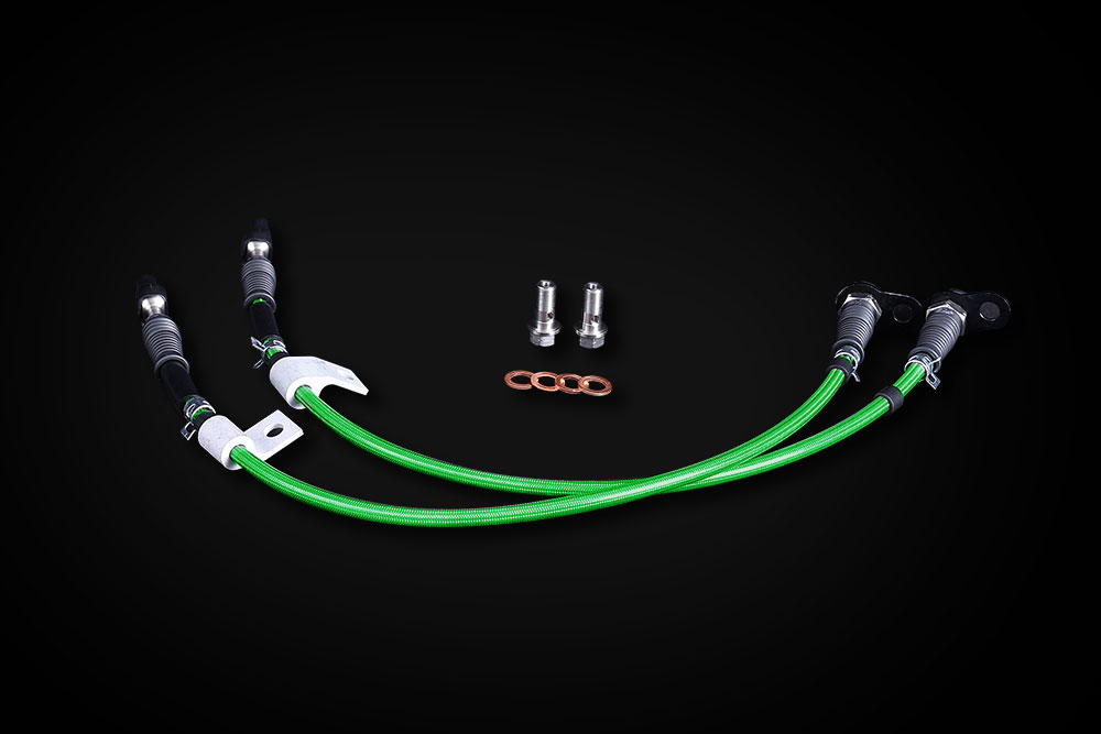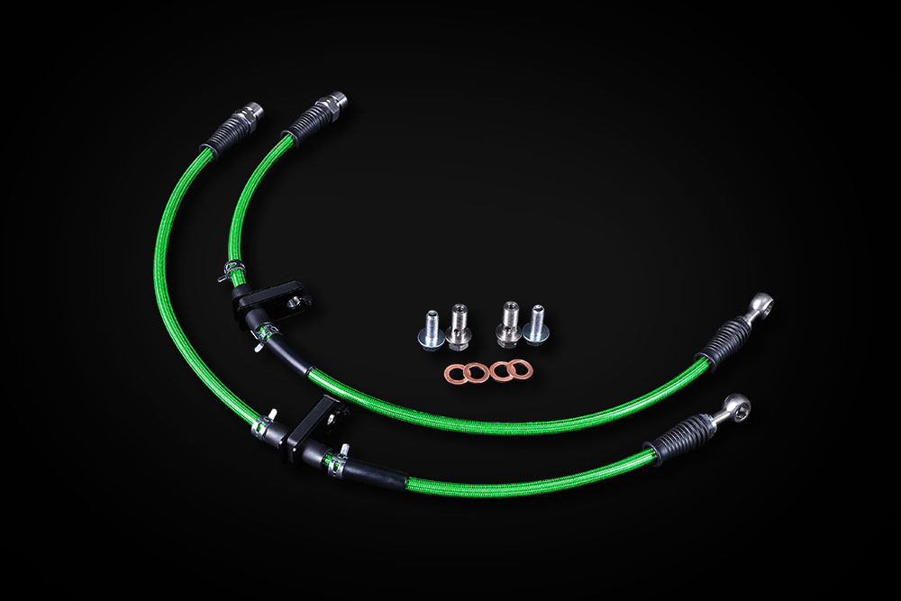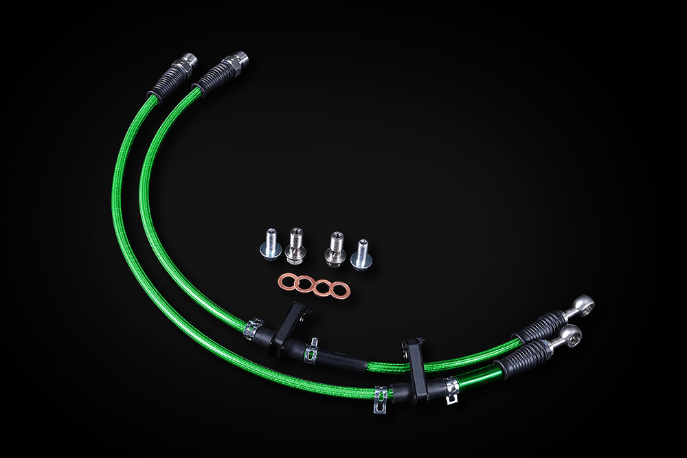原厂橡胶刹车油管会膨胀,当刹车油挤压产生压力时会吸收掉一些压力,导致刹车油传达到卡钳活塞的时候压力损耗,刹车油会产生高热,不耐热的橡胶刹车油管会因为高热而破损。刹车钢喉是采用铁氟龙制作,利用不锈钢丝网编织包裹,让每一条金属油管具备柔软度又不会因压力导致膨胀。将橡胶油管所产生的膨胀抵销降到零。刹车的灵敏度,也随之提升,钢喉是能够忠实的无损耗的传递制动压力。SAVANINI制动卡钳不锈钢编织钢喉是标准的赛车升级项目。产品由PTFE内层软管支撑,可以在260℃连续使用,很低的摩擦系数良好的化学稳定性及高韧性。编织层由编织不锈钢编织层包裹。包裹在透明的PVC塑料管中,耐高压不会膨胀,防止磨损和断裂。油管接头均采用304不锈钢材料极端环境不会生锈腐蚀确保不渗油。SAVANINI钢喉采用进口高柔性高性能钢喉油管制造可以在任何竞技赛道工况中使用。